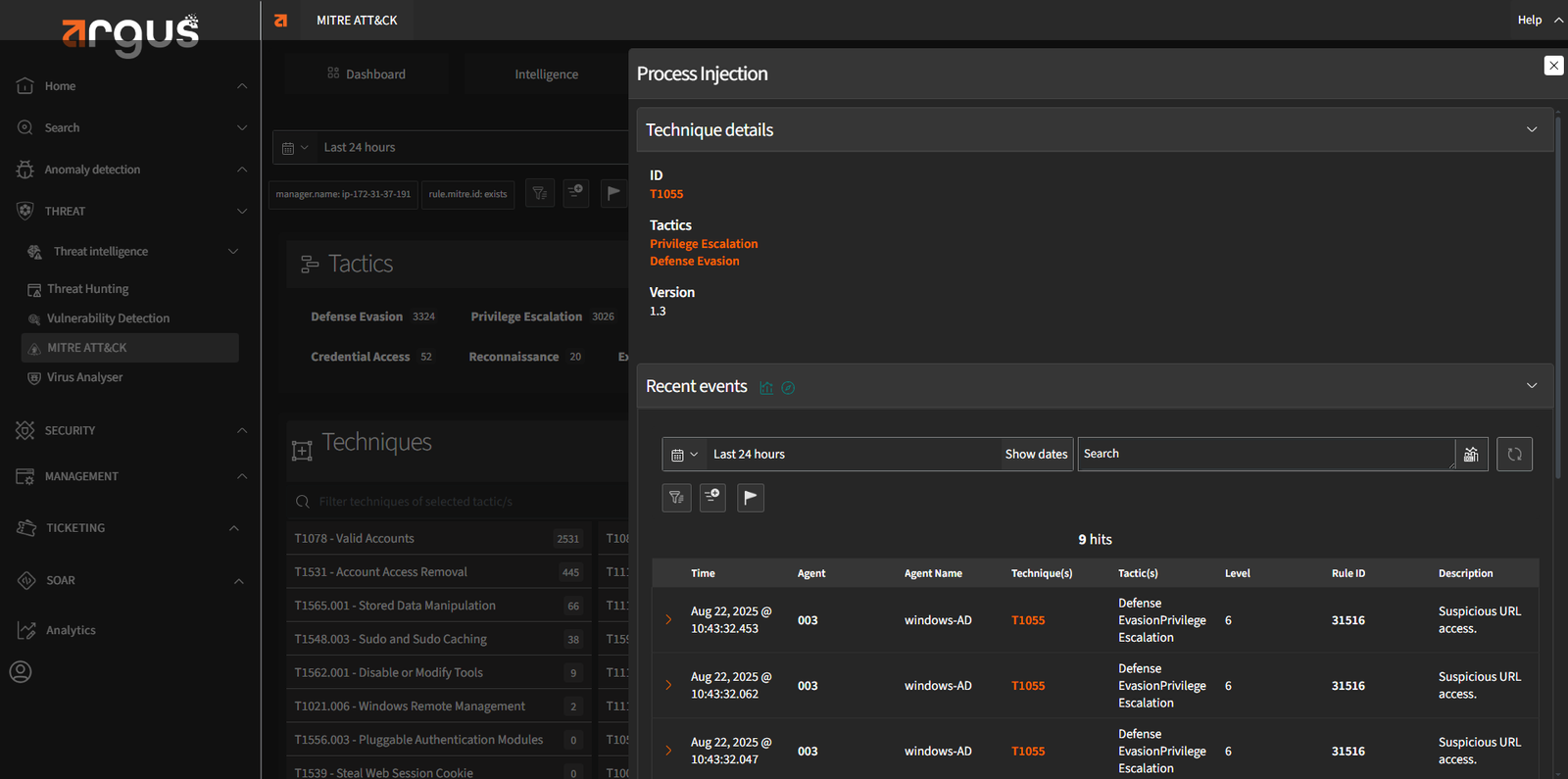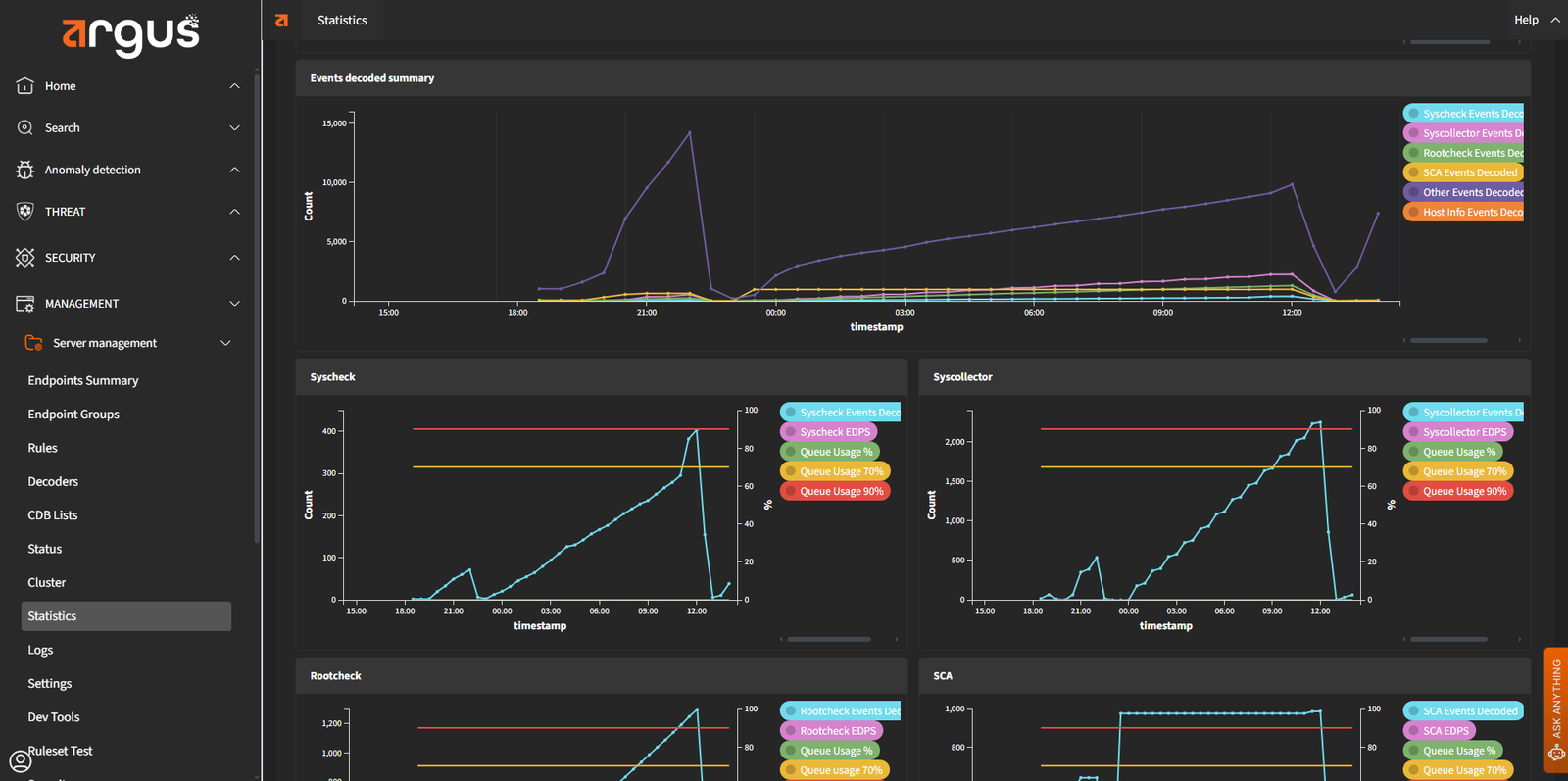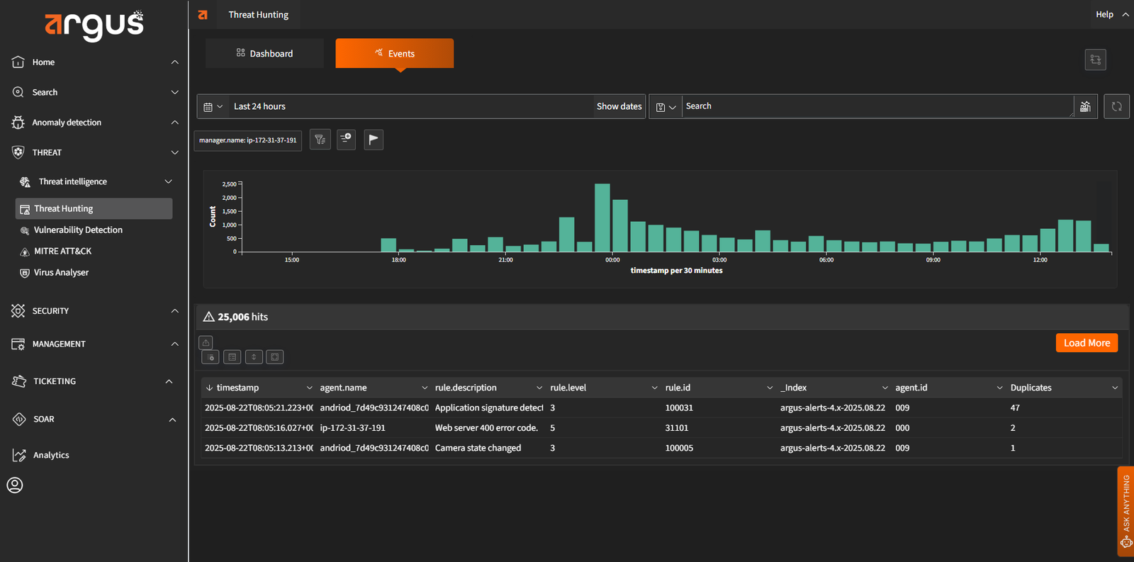 Argus provides real-time visibility into every endpoint. It uses tools like OSQuery and Sysmon to uncover hidden anomalies, enabling immediate investigation and response. This level of visibility helps reduce the dwell time of advanced threats and supports detailed forensic analysis.