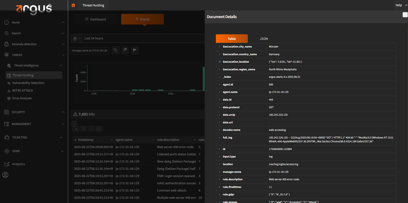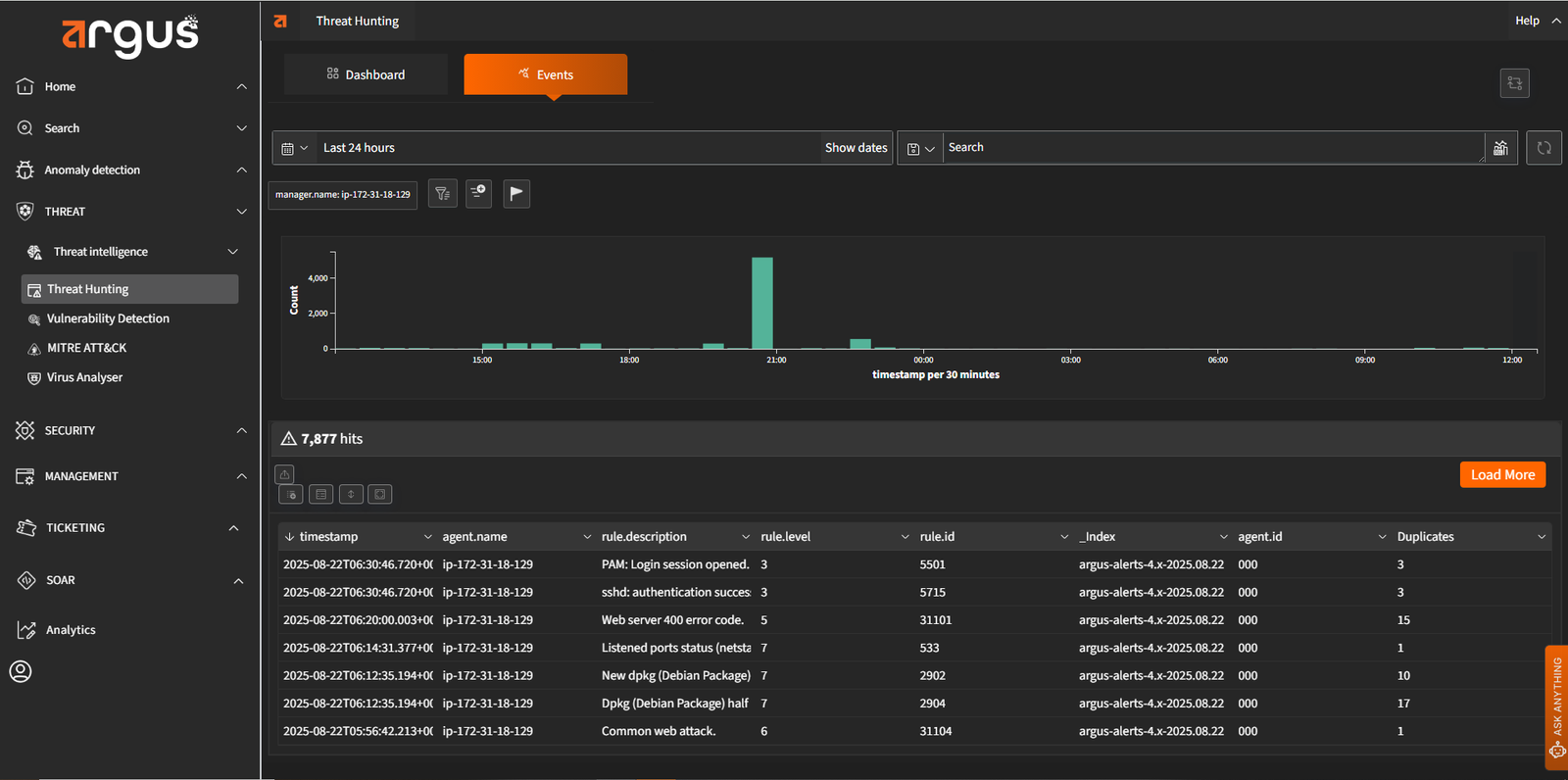 Argus continuously ingests global threat feeds and matches them against activity in your environment. This ensures known threats are flagged immediately, so your team is never caught off guard.