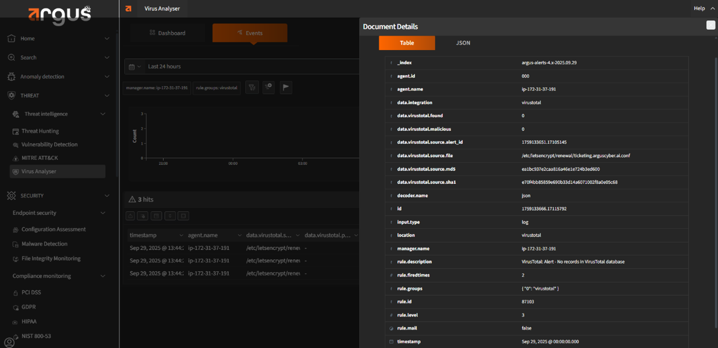 Argus includes a fully capable SIEM that delivers real-time analytics, log correlation, and security alerts. Built for performance and scalability, it helps you detect and respond to threats faster than ever.