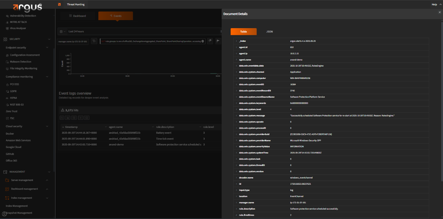 Argus continuously ingests data from your servers, endpoints, applications, and cloud environments. It normalizes and analyzes logs in real time, helping you stay on top of security incidents as they happen.
