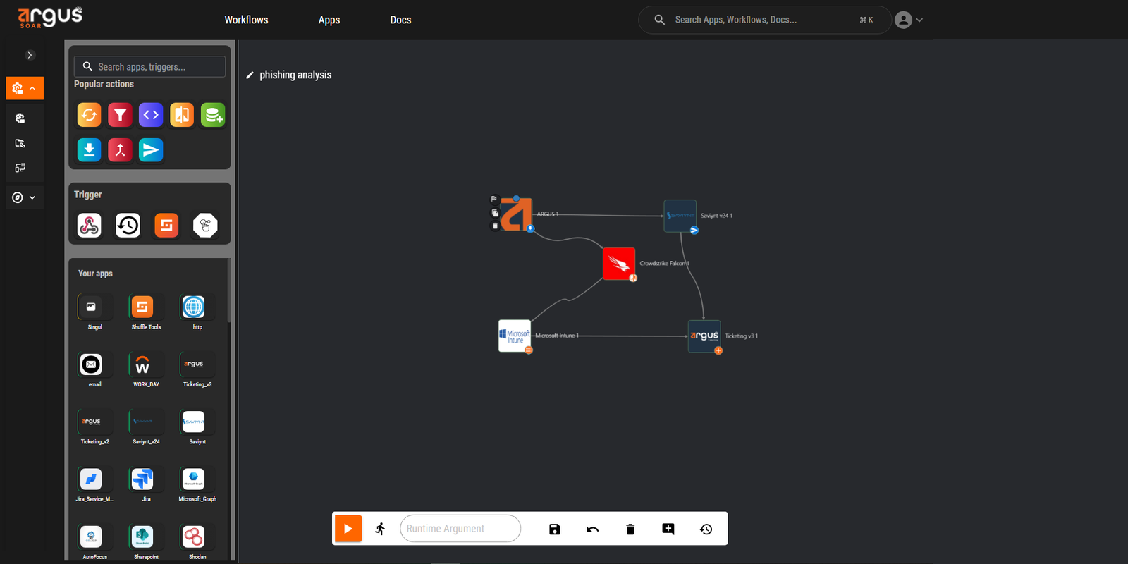 Argus is designed to help teams automate with confidence and respond with precision. Our SOAR feature eliminates delays, reduces manual effort, and makes your entire response pipeline smarter and more connected.