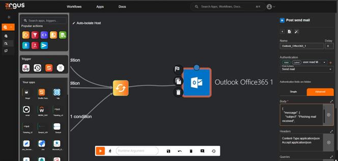 Security teams can create and adapt playbooks based on specific types of incidents. From phishing and insider threats to cloud misconfigurations, Argus enables flexible responses that align with your existing processes.